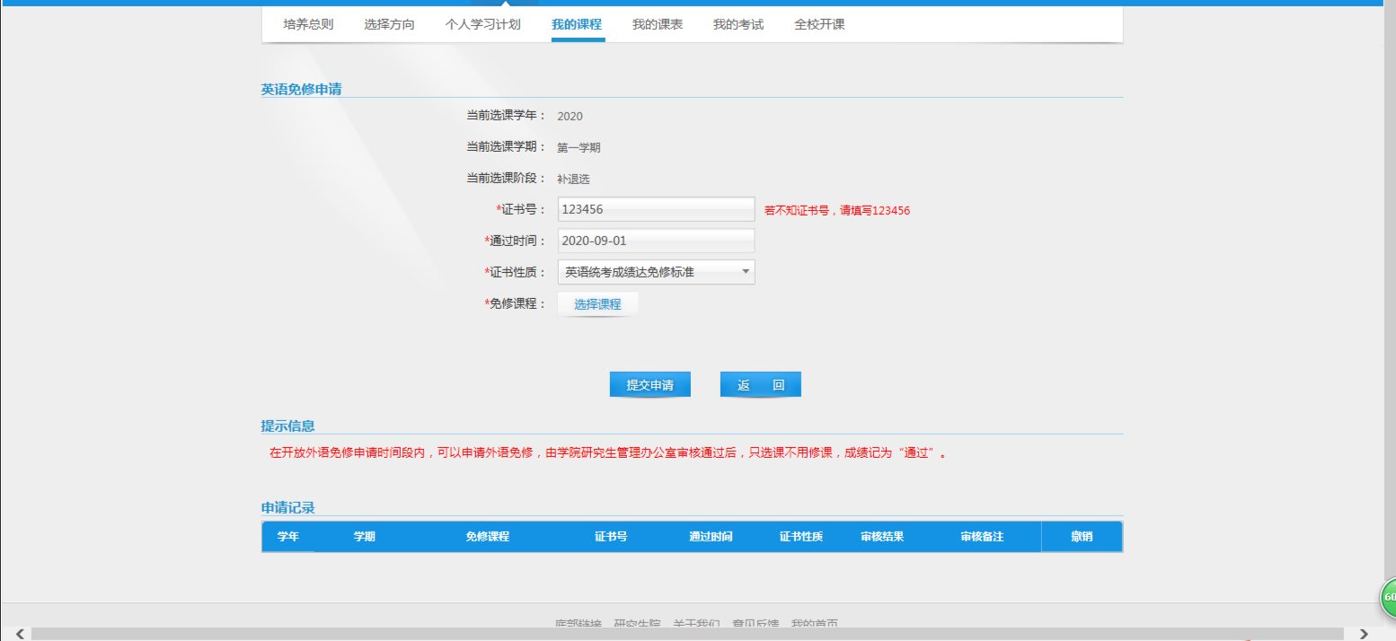 科学学位研究生选课界面外语免修申请操作说明:
