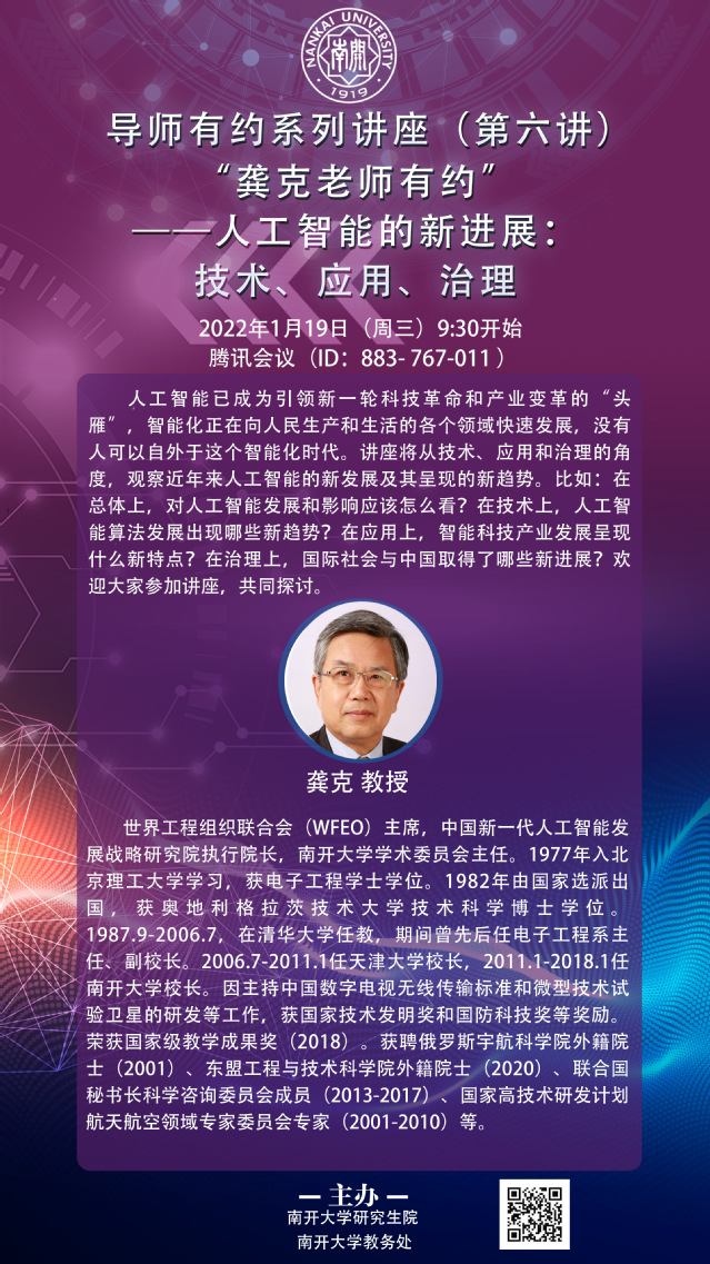 导师有约系列讲座(六)——龚克老师有约——人工智能的新进展:技术、应用、治理