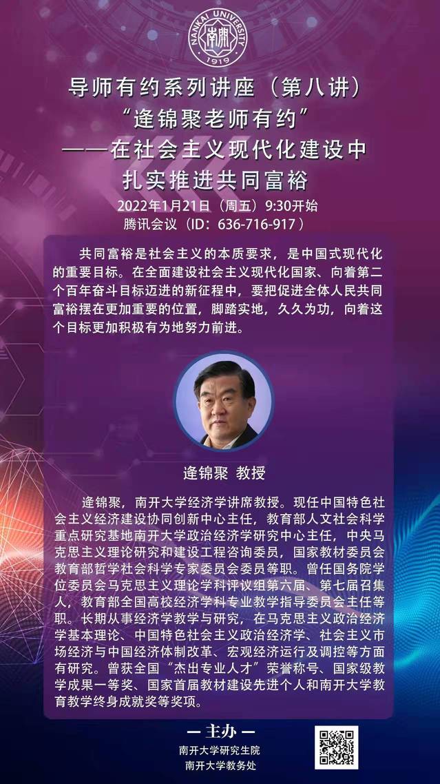 导师有约系列讲座(八)——逄锦聚老师有约——在社会主义现代化建设中扎实推进共同富裕