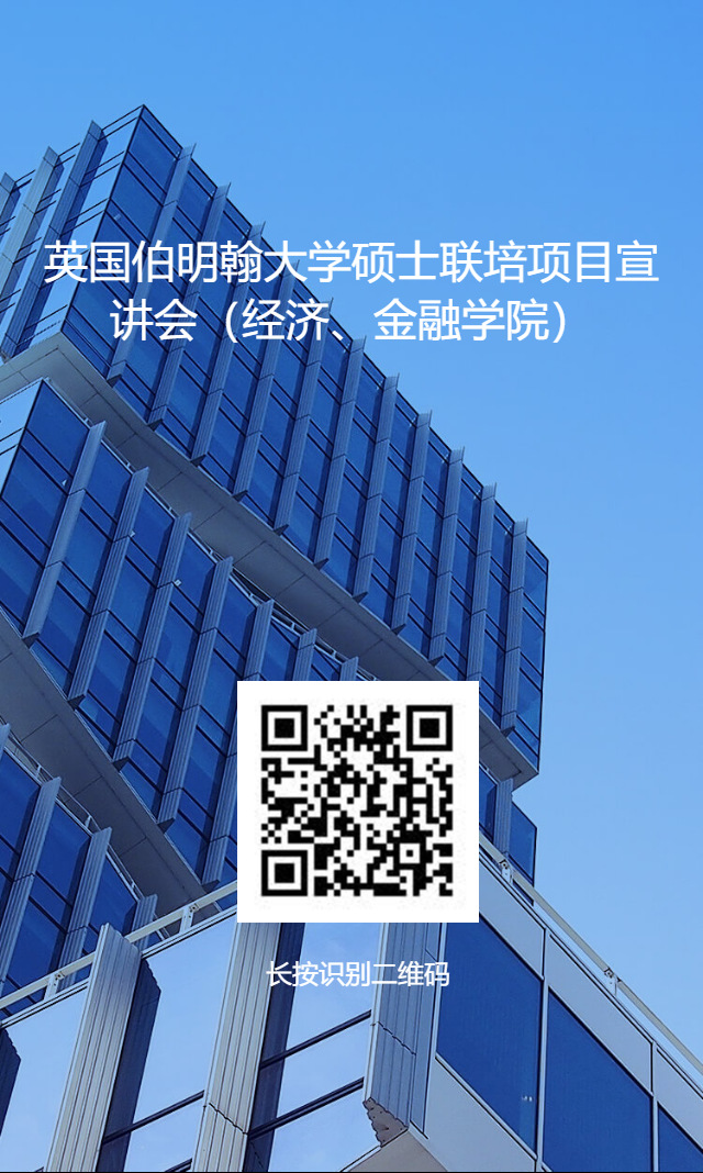 11月17日北京时间下午5:00-6:00,来自伯明翰大学商学院的David Dickinson教授将就硕士联合培养项目进行宣讲及答疑,介绍商学院各专业相关内容,欢迎广大同学报名参加!