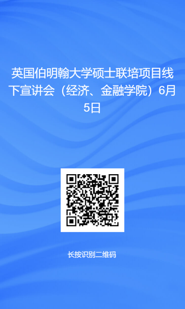 6月5日北京时间下午1:30-2:30,伯明翰大学商学院教授Anindya Banerjee、David Dickinson将在八里台校区二主楼A507进行硕士联合培养项目交流与答疑,介绍商学院各专业授课情况。活动面向2023年申请人,以及有意向在2024年申请本项目的本科生、研究生。